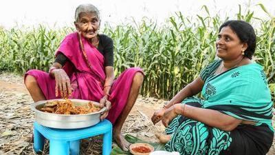 这个视频里的老人,看起来已经年过古稀,但精神矍铄,活力十足。他穿着一件简单的印度传统服装,坐在一个小摊前,面前摆着一堆新鲜翠绿的葫芦瓜。老人拿起一个葫芦瓜,仔细地观察了然后开始动手。